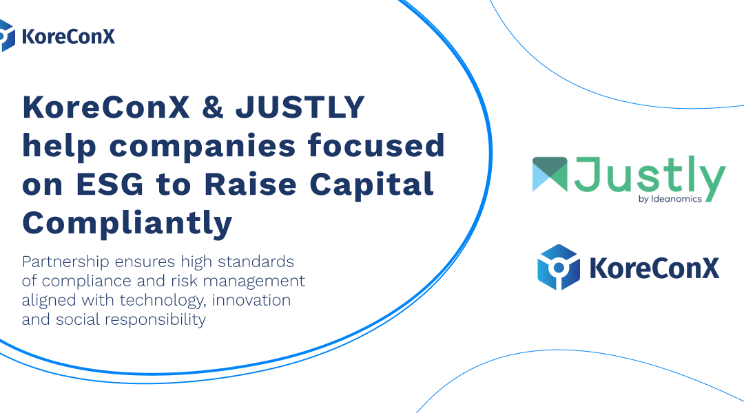 NEW YORK, April 13, 2022 – With a daily increase in demand for investments in companies focused on ESG (Environmental, Social, & Corporate Governance), KoreConX is thrilled to announce one more strategic KorePartner to its ecosystem: JUSTLY Markets LLC, a FINRA-registered broker-dealer, operating an online capital raising platform for ESG-principled companies and for solutions in the ESG space.