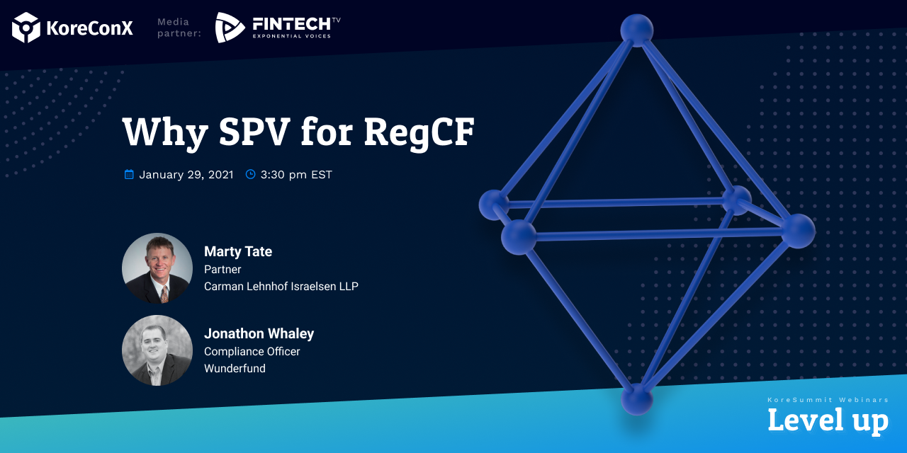 Join Marty Tate and Jonathan Whaley as they discuss the application and potential for SPVs in RegCF.